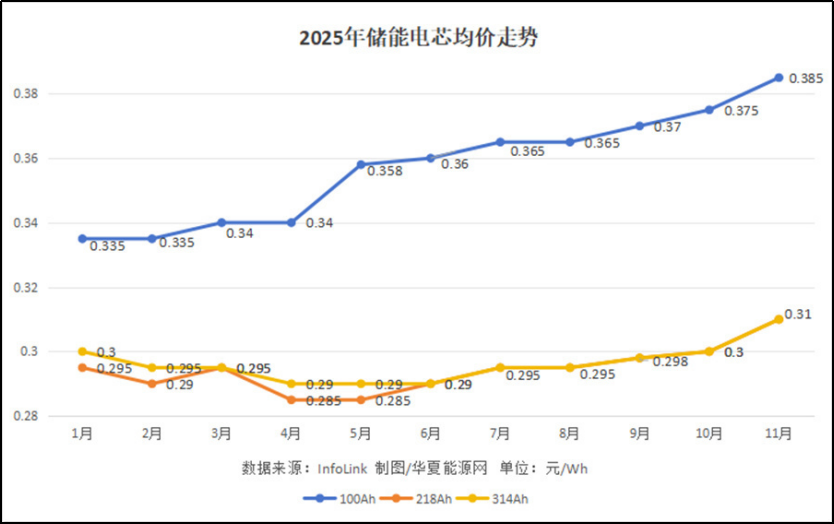 2022年初,主流储能电芯报价在1.08元/Wh以上;2022年下半年,价格走势出现下行趋势,跌破1元/Wh;到2023年,均价更是跌至0.45元/Wh,直接腰斩。到2024年末,价格跌至0.3元/Wh,2025年最低中标价格触及0.26元/Wh的“地板价”。